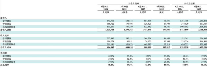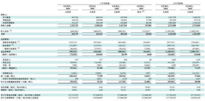 智能设备的毛利率从2024年同期的30.3%增加到2025年第二季度的41.5%。这一改善主要归因于自2024年下半年以来新推出的友岛词典笔带来的毛利率上升。